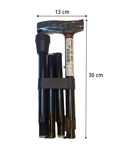 Der Gehstock kann so klein zusammengefaltet werden, dass er problemlos in den Staufächern von Elektromobilen oder in den Taschen der Carlett Rollatoren Platz findet.