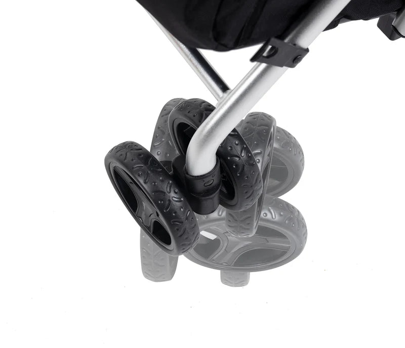 Rotierende Vorderräder sorgen für maximale Wendigkeit, auch in engen Gängen.