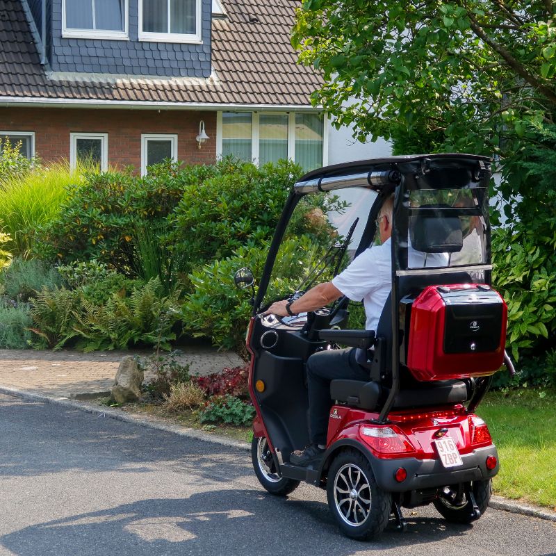 Das Deisla DS3 ist mit einem fest integrierten Dach und einem Rundum-Wetterschutz ausgestattet – inklusive automatischem Scheibenwischer und Spritzwassersystem – damit Sie nicht nur bei Sonnenschein, sondern auch bei Regen sicher unterwegs sind.